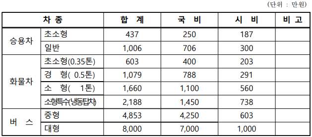 | 제조·수입사 | 차종 | 국비 (만원) |