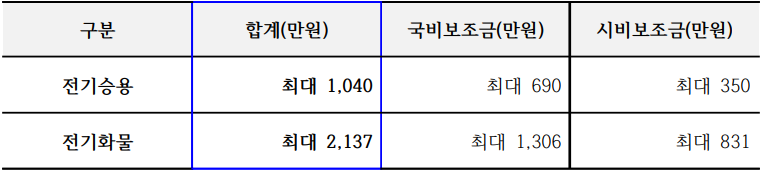 | 2024년 울산시 전기차 보조금 차종별 지원금(+하반기 추경) (0) | 2024.07.15 |