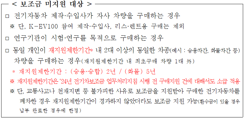 - 전기화물(개인·개인사업자) 세대당 1대, (법인) 사업장당 1대, (공공기관) 제한없음