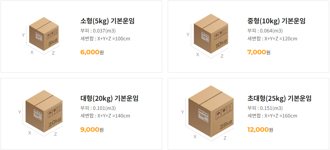 일반택배 소형 5kg(X+Y+Z=100cm) 기본운임 : 6,000원