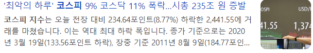 1987년 블랙먼데이를 넘어서는 하락이라고 한다.