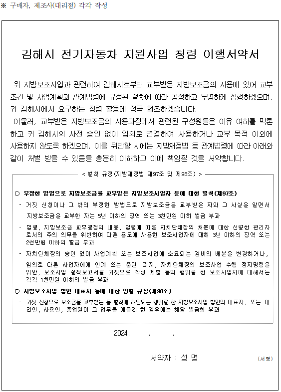 김해시 전기차 구매 보조금 지급신청서