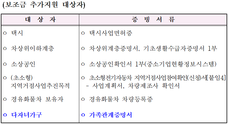 - 추가 보조금 대상