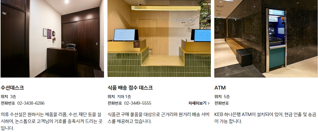 현대백화점 압구정본점 서비스시설현황