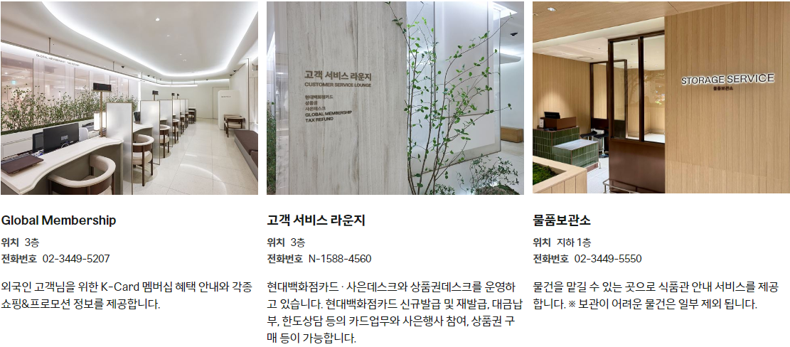현대백화점 압구정본점 서비스시설현황