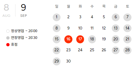 롯데백화점 동래점 휴무일은 9월 16일~17일입니다.