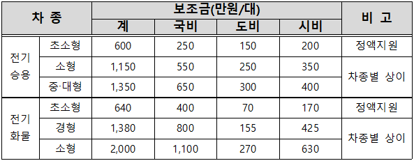 - 구매보조금 : 차종별 차등 지원