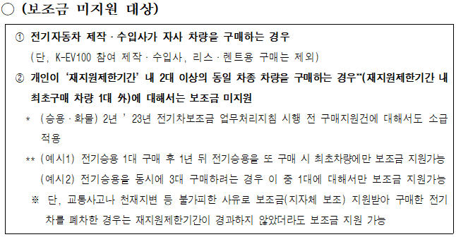 - 최대 1대(재지원 제한기간 : 승용·화물 2년)