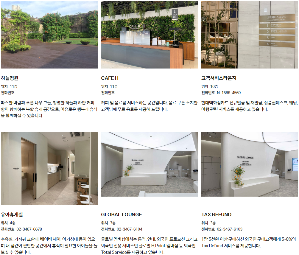 현대백화점 무역센터점 서비스시설현황