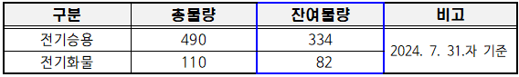 | 한국상용트럭 | 한국상용 1톤 롱바디 EV 카고트럭 | 818 | 520 | 1,338 |