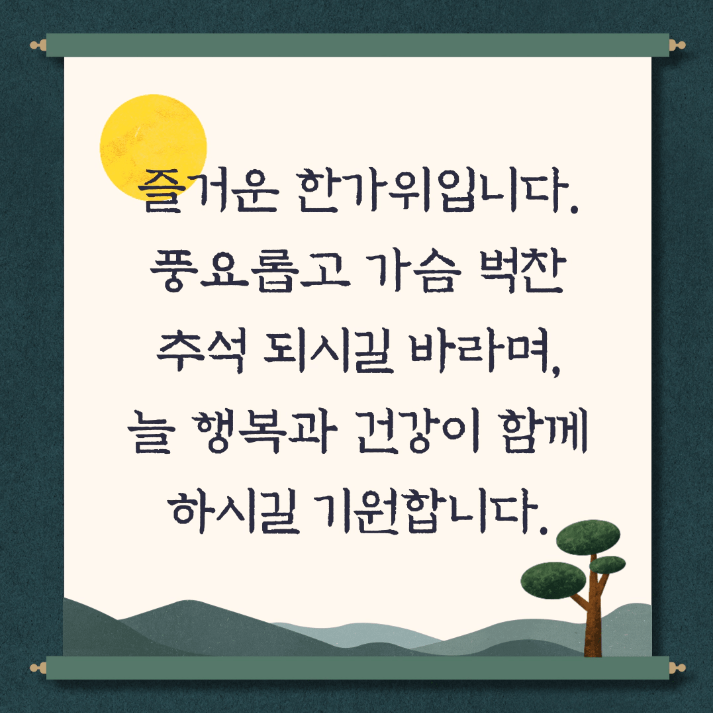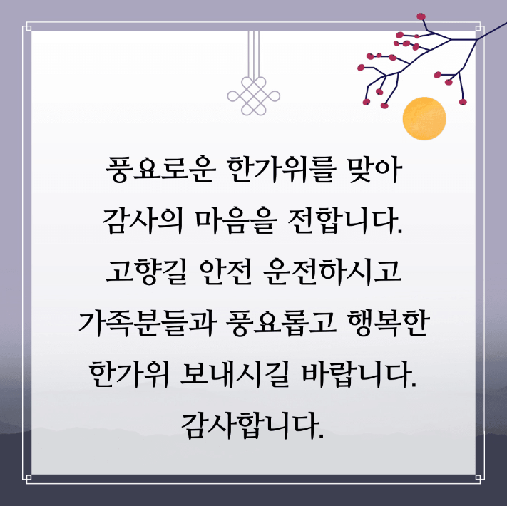 - 바쁜 일상 속에서도 추석에는 잠시 쉬어가며 가족과 함께 행복한 시간 보내길 바랍니다.