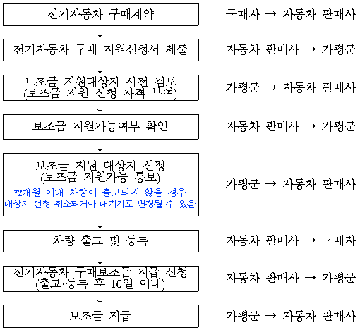 - 가평군은 예산 범위 내에서 자동차 제작·수입사에 보조금 지원 대상자 선정하여 통보