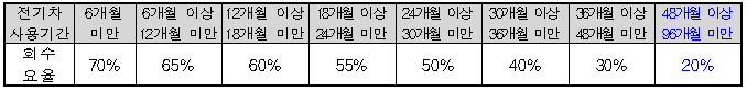 ※ 전기승용의 경우, 배터리 보증수리 기간이 10년/50만km 이상인 차량에는 보조금 상한(중·대형 650만원 / 소형 550만원)을 초과하지 않는 선에서 30만원 지원