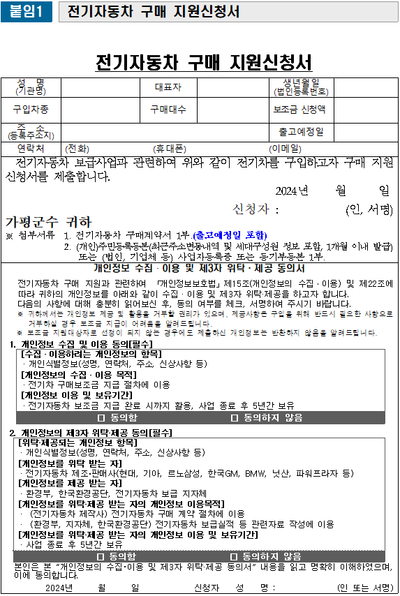 2024년 하반기 가평군 전기차 보조금