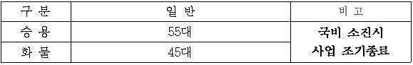 보급대수 : 100대(승용 55대, 화물 45대)