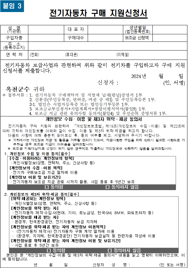 2024년 옥천군 하반기 전기차 보조금
