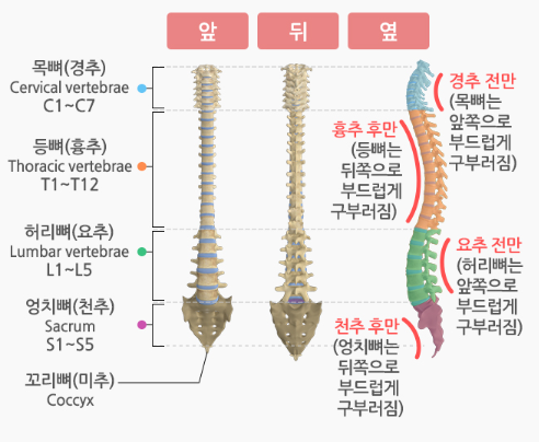 요추는 상체의 무게를 지탱하고 허리의 움직임을 담당합니다.