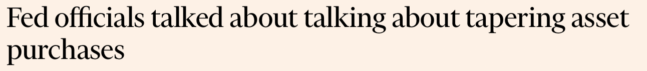 즉 테이퍼링 시작해야 된다.!! 라고 연준이 직접적으로 말을 한 건 아니지만 자산 구매 속도 조정을 위한 계획이라는 문구 자체가 처음 등장했기에 이제는 연준도 인플레이션을 신경 쓰고 있구나 라고 간접적으로 느낄 수 있는 문구였다고 생각합니다.