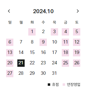 주말(금~일) 영업시간 10:30 ~ 20:30