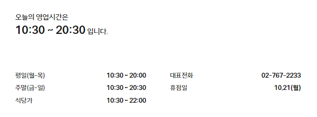 평일(월~목) 영업시간 10:30 ~ 20:00