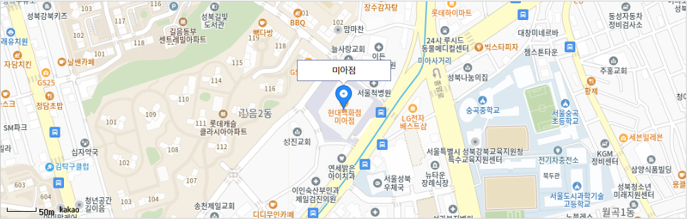 미아점 주소 서울특별시 성북구 동소문로 315 / 서울특별시 성북구 길음동 20-1