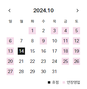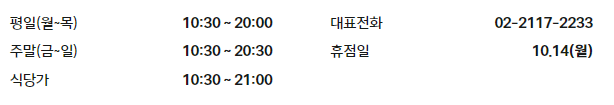 평일(월~목) 영업시간 10:30 ~ 20:00
