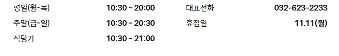 평일(월~목) 영업시간 10:30 ~ 20:00