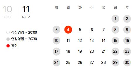 연장 영업시간 10:30 ~ 20:30