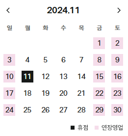 주말(금~일) 영업시간 10:30 ~ 20:30