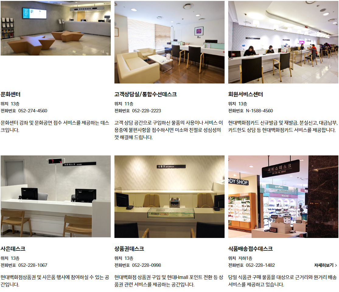 사은데스크 (고객 서비스 라운지 안) 052-228-1067