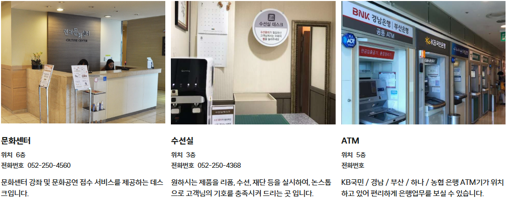 사은데스크 (고객 쉼터 안) 052-250-4702