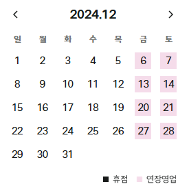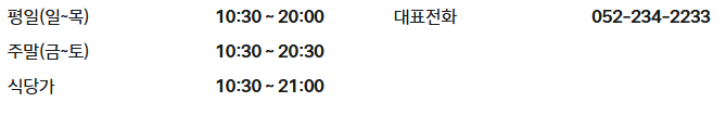 평일(일~목) 영업시간 10:30 ~ 20:00