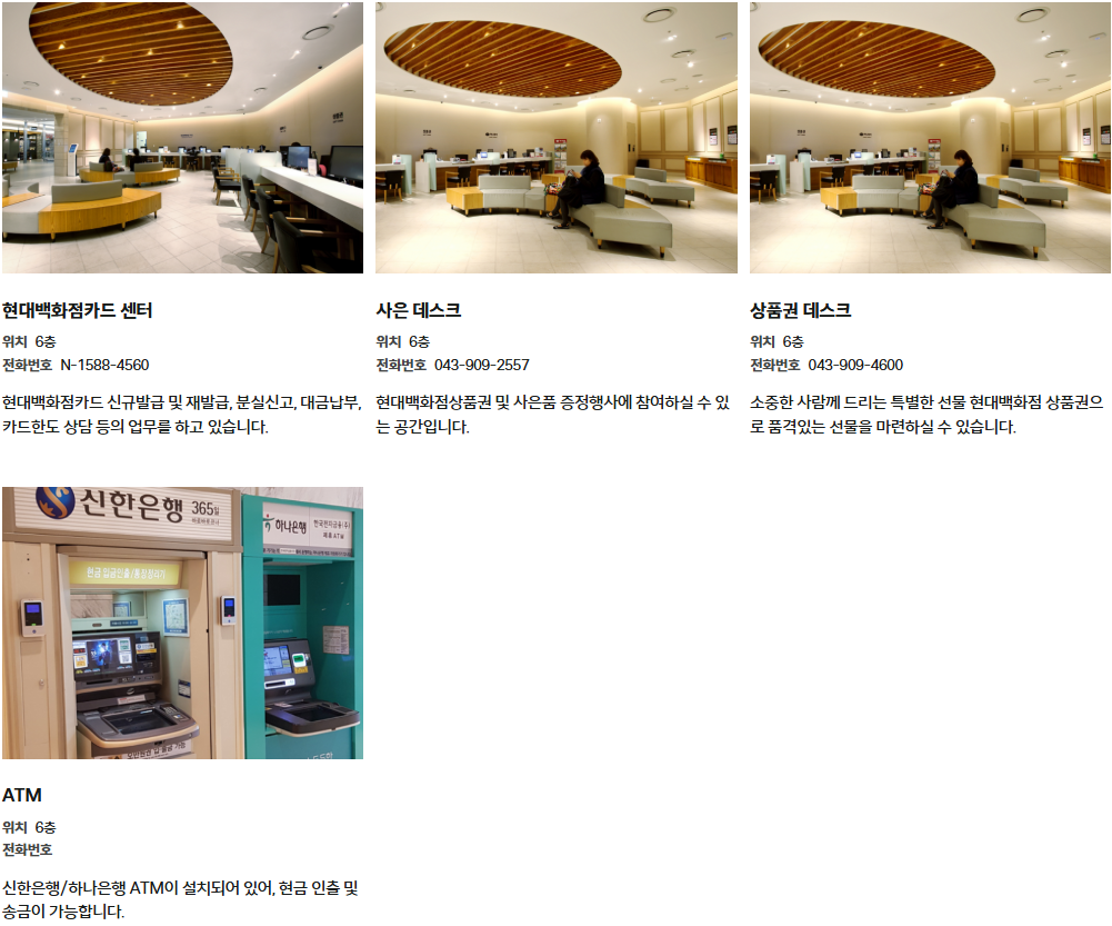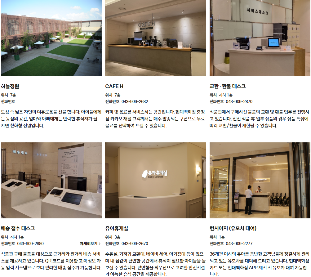 현대백화점 충청점 서비스시설