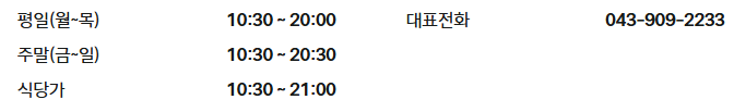 평일(월~목) 영업시간 10:30 ~ 20:00