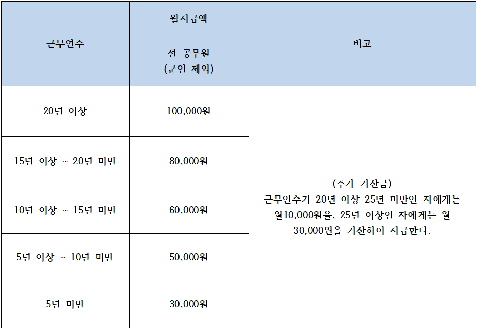 공무원 정근 수당 가산금은 월급에 매달 가산해서 지급