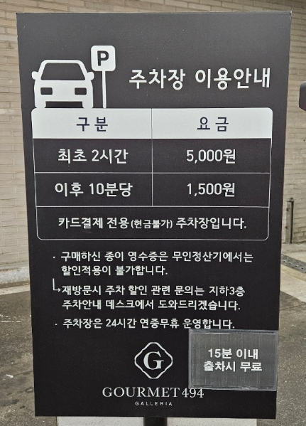 갤러리아백화점 고메이494 한남 주차요금