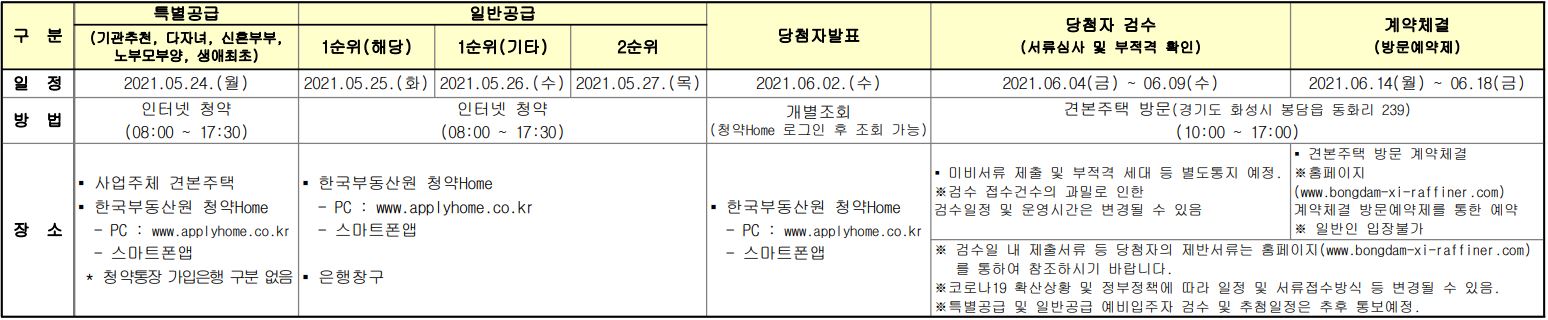 ※ 본 아파트에 1순위 청약 시 모집공고일 현재 과거 2년 이내 가점제로 당첨된 자의 세대에 속한 자는 추첨제로 청약접수하셔야 합니다. 또한 가점제 제한 청약자가 가점제로 청약하여 당첨된 경우 부적격 처리되오니 청약 시 유의하시기 바랍니다.