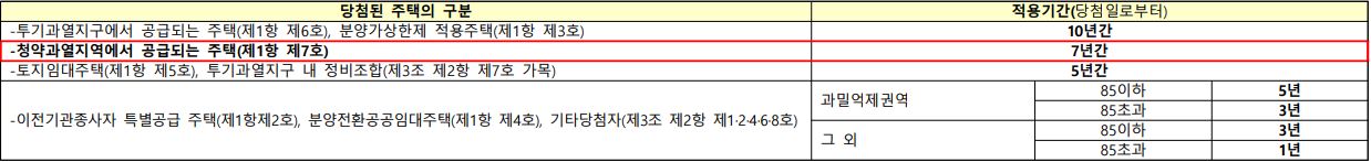 본 아파트의 당첨자로 선정 시 당첨자 및 그 세대에 속한 자는 당첨일로부터 향후 7년간 투기과열지구 및 청약과열지역 내 공급되는 주택의 1순위 접수제한을 받을 수 있으니 유의하시기 바랍니다.