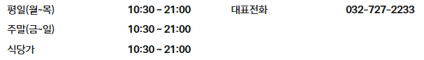평일(월-목) 영업시간 10:30 ~ 21:00