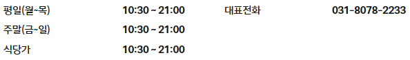 평일(월-목) 영업시간 10:30 ~ 21:00