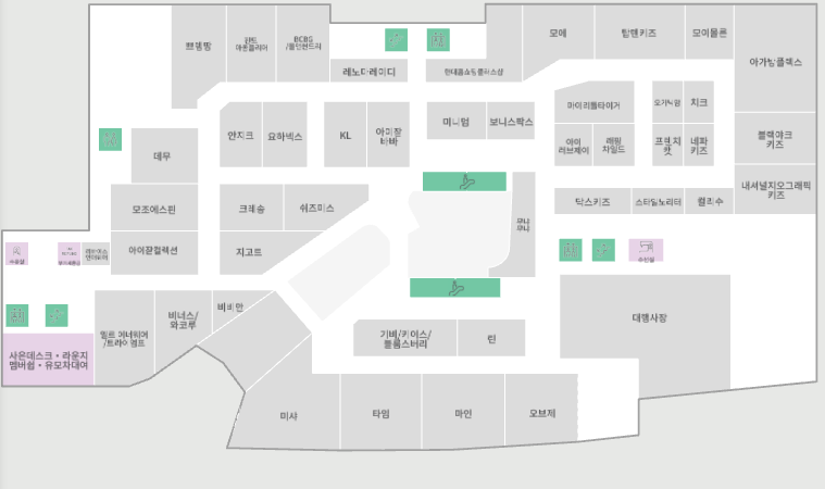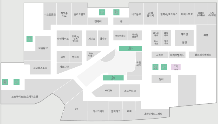 지하 1층 아디다스/뉴발란스·전자랜드·리바트·올리브영·키즈카페
