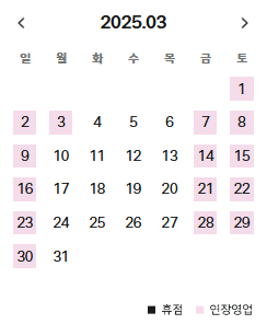 주말(금-일) 영업시간 10:30 ~ 21:30