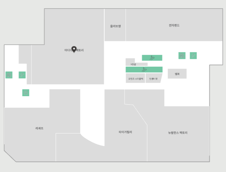 지하 1층 아디다스/뉴발란스·전자랜드·리바트·올리브영·키즈카페
