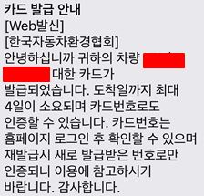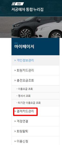 카드 발급이 완료되었으면 환경부에 다시 접속하셔서 결제카드 관리 들어가셔서 발급받은 카드를 등록해주시면 끝~입니다.!
