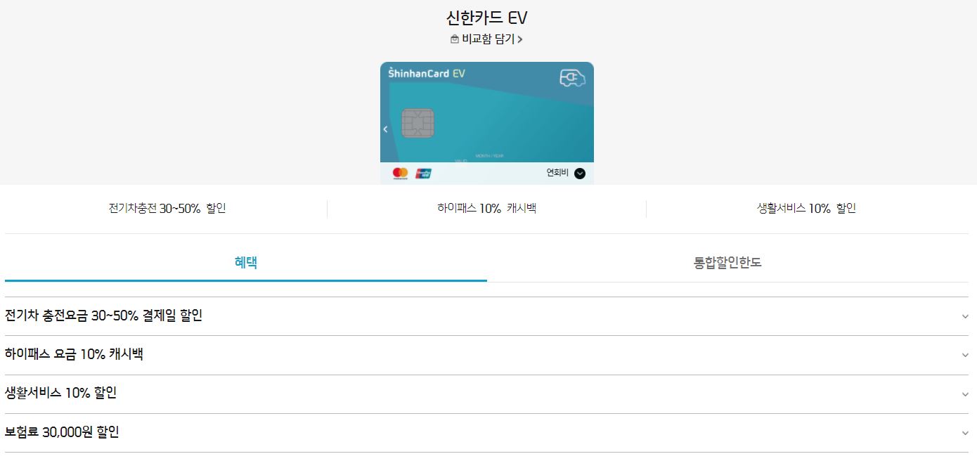 저는 할인 혜택을 받기 위해 신한 EV카드를 선택하였습니다.
