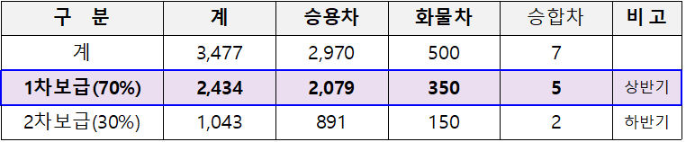 - 화물차(일반, 택배, 중소기업 생산, 우선순위 배정 물량) 잔여분 7월 1일부터 통합 진행