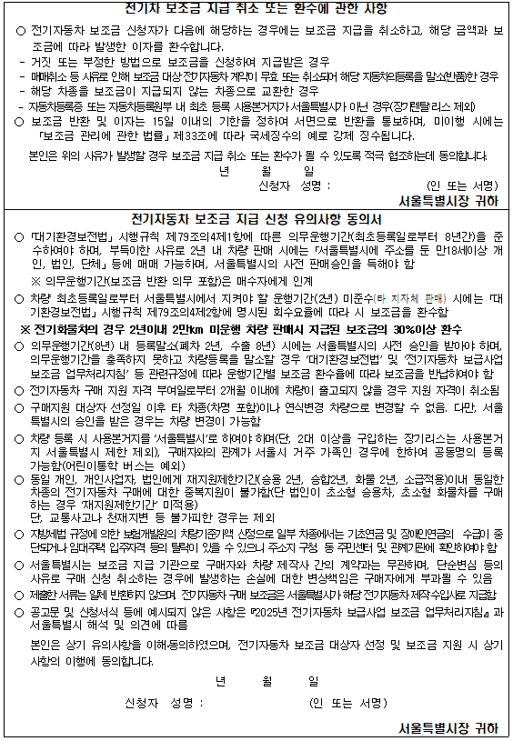 - 전기차 보조금 지급 취소 또는 환수 및 보조금 지급 신청 유의사항 동의