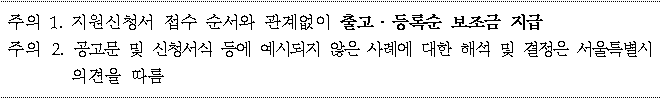 ※ 개인택시 등 개인영업용 차량의 경우 사용본거지를 기준으로 하며, 법인이 아닌 비영리민간단체, 사단·재단 등의 경우에 대표자 주소지와 관계없이 사업장 주소지가 서울일 경우 구매 가능