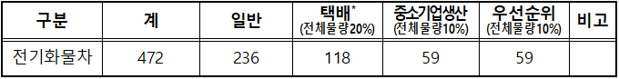 - (화물) 개인사업자나 법인이 2년 이내 2대 이상의 전기차를 구매하려는 경우 한국환경공단 민간보조사업을 통해 신청가능하며, 국비만 지원