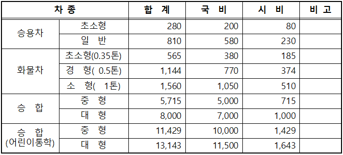 - 전기승합차 : 32대[일반 15대, 어린이통학버스 17대]